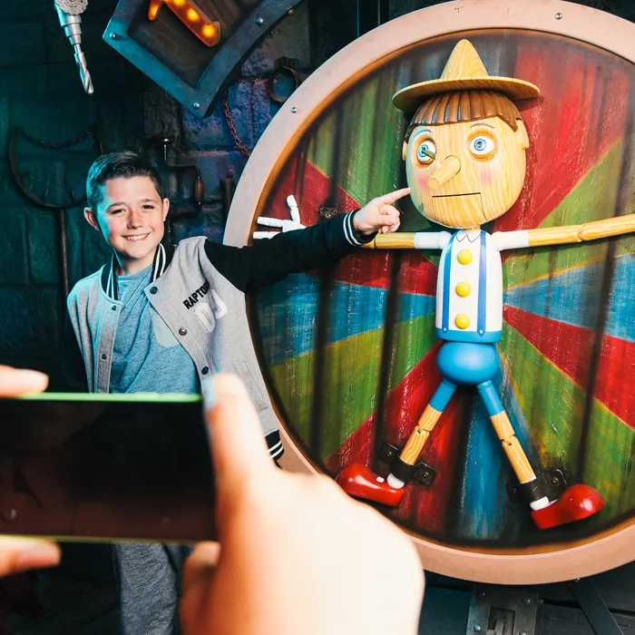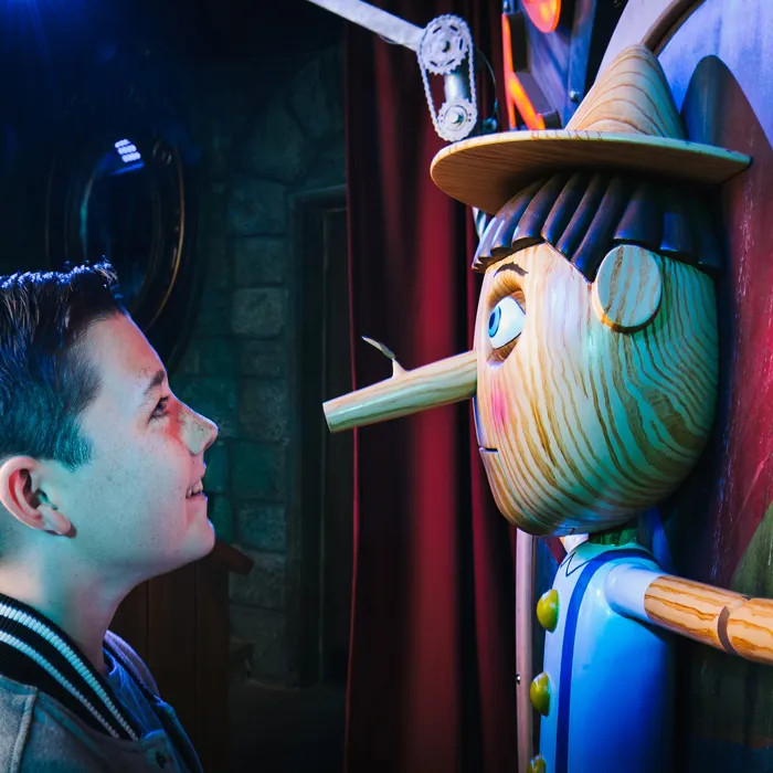Anyway, he’s been pretty busy keeping Pinocchio captive – but if you can answer three questions correctly, he’ll let you all go free and give you the conscience of a boy… get one wrong however and he’ll start practising his woodworking skills! Best answer quick though as the Magic Mirror has given you a time limit. Tick tock.